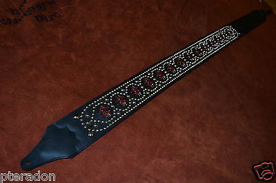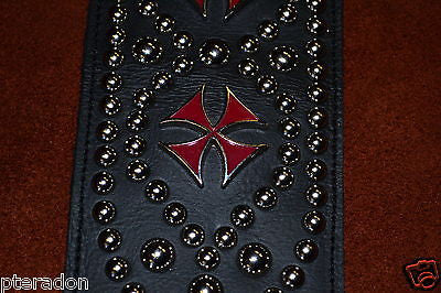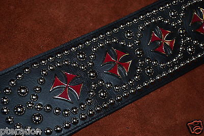 Carlino Custom Maltese Iron Cross Leather Studded Black Leather Guitar Strap