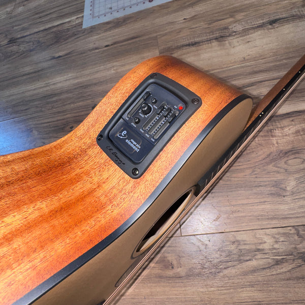 The Violet Master’s Choice comes with LR Baggs Stagepro Element, which is an upgraded version of the LR Baggs Element Active System – Volume Tone Control. The additional features of the Stagepro Element include a side-mounted preamp with a three-band equalizer and phase inversion as well as a sensitive onboard tuner. With a clean classy look, the Stagepro Element pickup system provides easy battery access and includes Garrett Null notch filter that delivers a warm pristine sound even under the most challenging conditions.