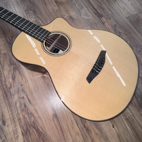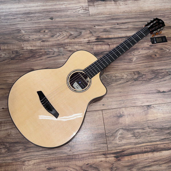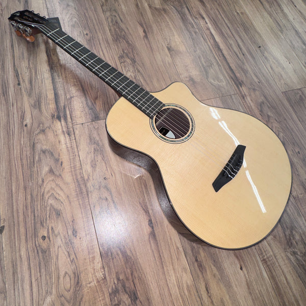 Our Grand Nylon series combines two guitar worlds, the sound and lightness of playing the classical guitar and ergonomic features of a neck of steel string guitars. The GNc 4-SR has a Sitka spruce soundboard and Indian rosewood back and sides. These tonewoods give the guitar not only a pleasing musical sound, but also a gorgeous natural look. A time-proven body design and internal bracing pattern translate into an optimal balance of volume, sustain, and dynamics.